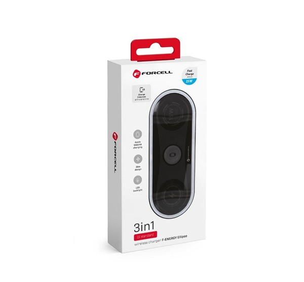 Forcell F-energy Ellipse 3in1 vezeték nélküli töltőpad, 15W gyorsöltéssel, fekete