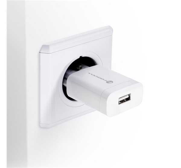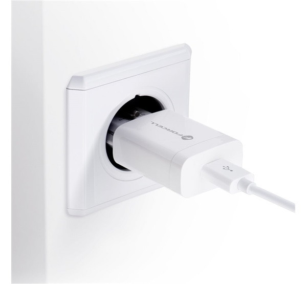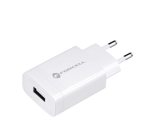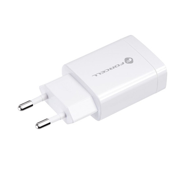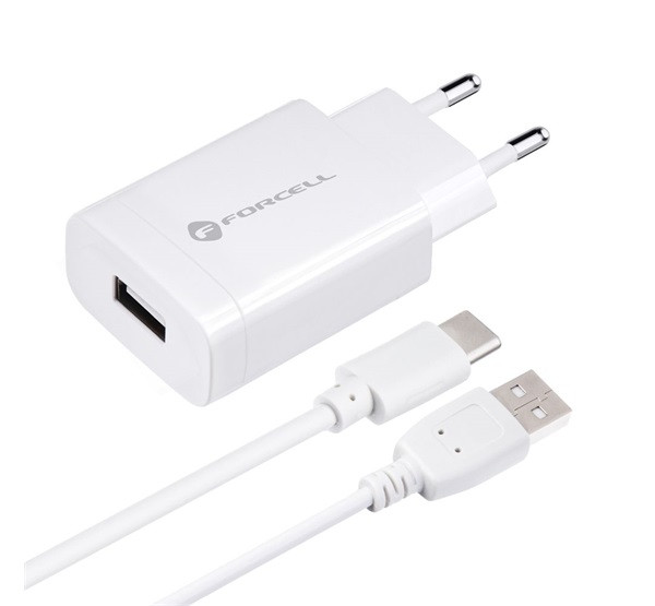 Forcell F-Energy TFK-TC-1099 USB-A + USB-A-USB-C töltő adapter kábellel, QC3.0, 2,4A, 18W, fehér
