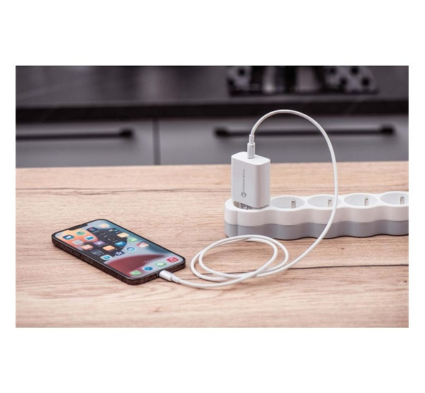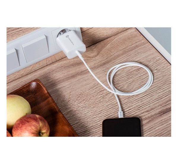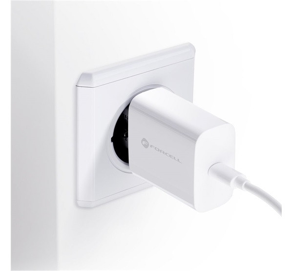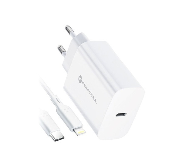 Forcell F-Energy TFK-TC-20WPD USB-C + USB-C-Lightning töltő adapter kábellel, PD, QC4.0, 3A, 20W, fehér