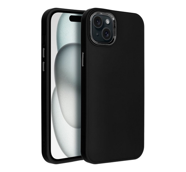 Frame iPhone 15 Plus közepesen ütésálló tok kameravédő kerettel, fekete