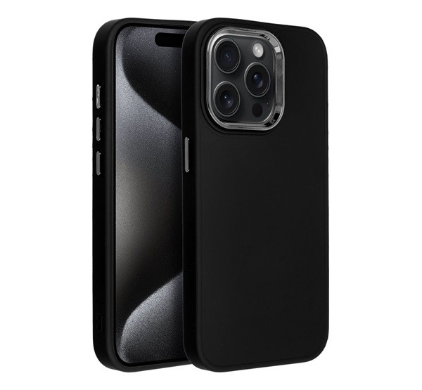Frame iPhone 15 Pro közepesen ütésálló tok kameravédő kerettel, fekete
