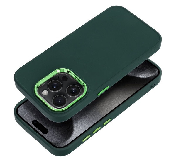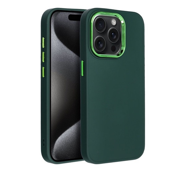 Frame iPhone 15 Pro közepesen ütésálló tok kameravédő kerettel, zöld