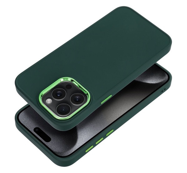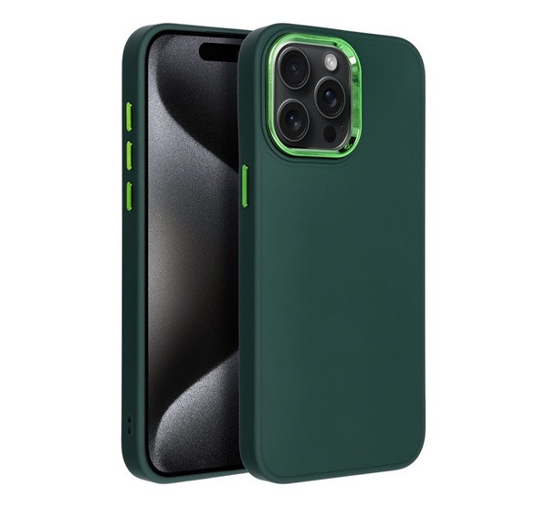 Frame iPhone 15 Pro Max közepesen ütésálló tok kameravédő kerettel, zöld