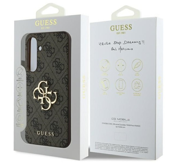 Az elegáns Guess tok a 4G Big Metal Logo kollekcióból kifinomult, felismerhető 4G mintával és az aranyszínű GUESS logóval ellátott.