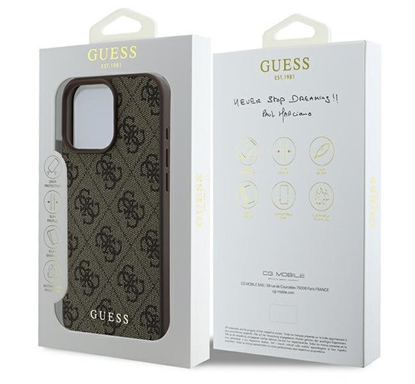 Guess 4G Classic iPhone 16 Pro Max kemény hátlap tok, barna GUHCP16XG4GFBR