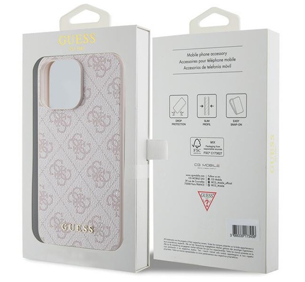 Guess 4G Metal Gold Logo Apple iPhone 15 Pro Max hátlap tok, rózsaszín