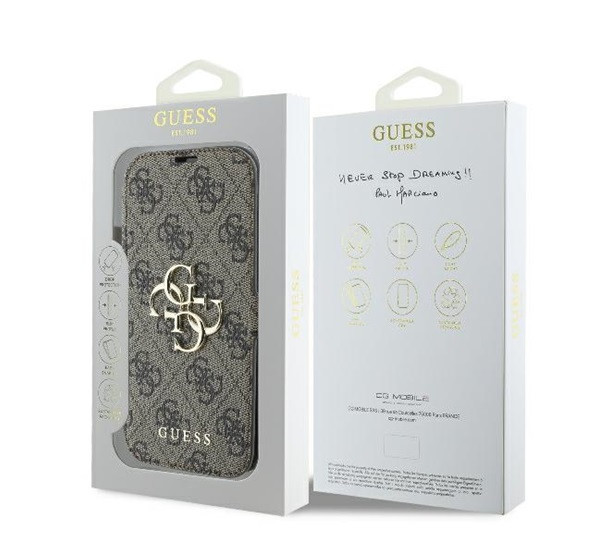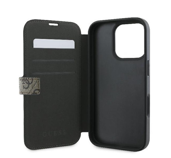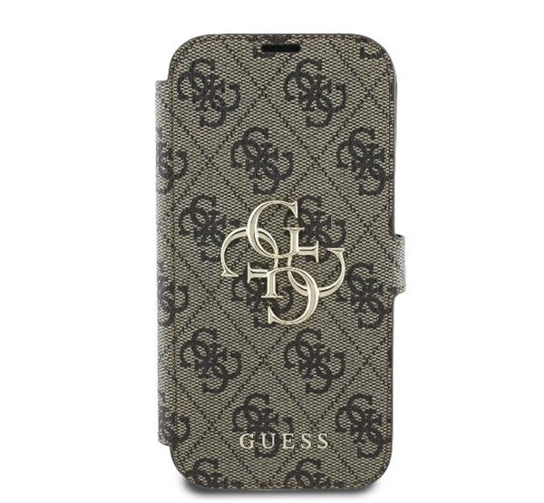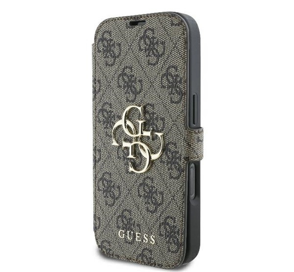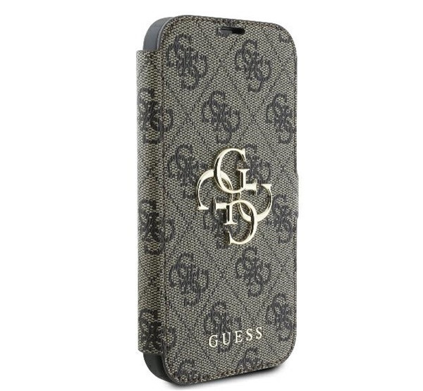Guess 4G Metal Logo iPhone 16 Pro Max flip/oldalra nyíló tok, barna GUBKP16X4GMGBR