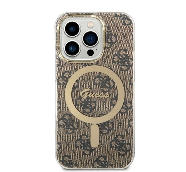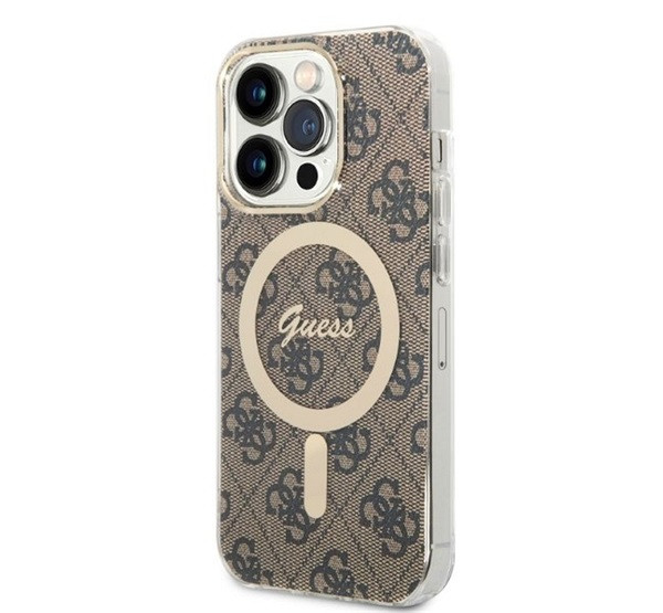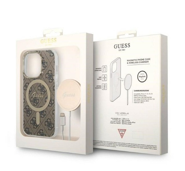 Guess 4G Print MagSafe Apple iPhone 14 Pro Max hátlap tok, barna + MagSafe töltő