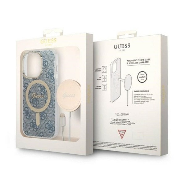 Guess 4G Print MagSafe Apple iPhone 14 Pro Max hátlap tok, kék + MagSafe töltő
