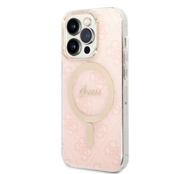 Guess 4G Print MagSafe Apple iPhone 14 Pro Max hátlap tok, pink + MagSafe töltő