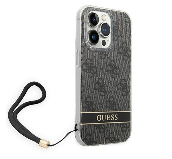 Guess 4G Print Strap Apple iPhone 14 Pro hátlap tok, fekete