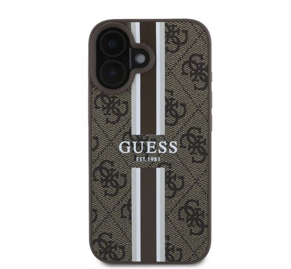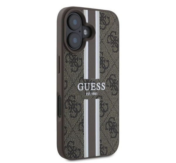 Guess 4G Printed Stripes MagSafe Apple iPhone 16 hátlap tok, barna GUHMP16SP4RPSW