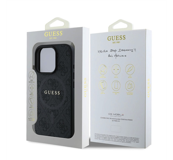 A Guess 4G Ring Classic Logo MagSafe exkluzív védőtokok sorozata, amely a kivételes funkcionalitást és a stílusos, egyedi designt ötvözi. Ezt a kollekciót olyan emberek számára terveztük, akiknek nem csak a telefonjuk biztonsága, hanem az elegáns megjelenés is fontos. A sorozat minden egyes tokja a jó ízlés igazi kifejezője, kiváló kézműves munkát és egyedi esztétikát kínál.