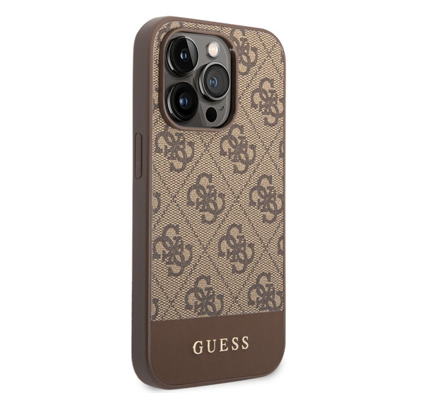 Guess 4G Stripe Apple iPhone 14 Pro szilikon hátlap tok, barna