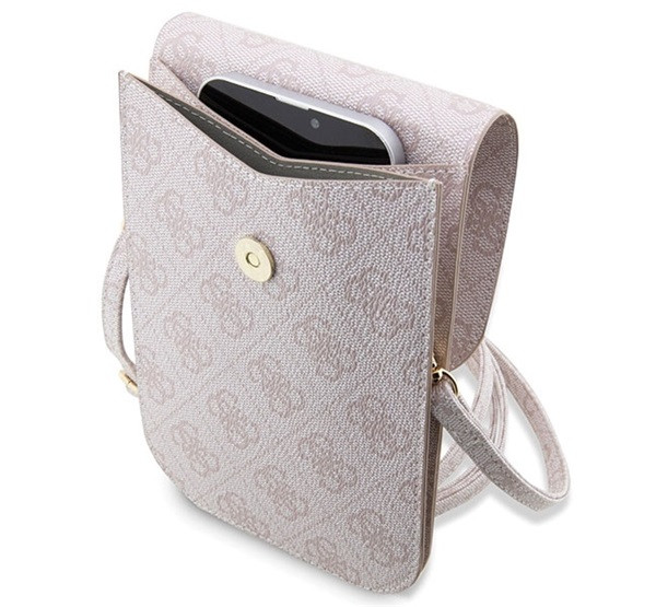 A Guess 4G Stripes kis táska rózsaszín színben, prémium minőségű anyagokból készült, és a híres Guess 4G logóval díszített. Stílusos és praktikus választás a mindennapi használatra, ideális a személyes tárgyak tárolására. A táska elegáns megjelenést biztosít, tökéletes kiegészítő bármilyen outfithez. Mérete: 17 cm x 10 cm x 2 cm