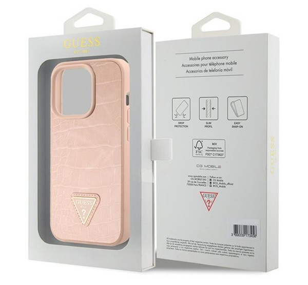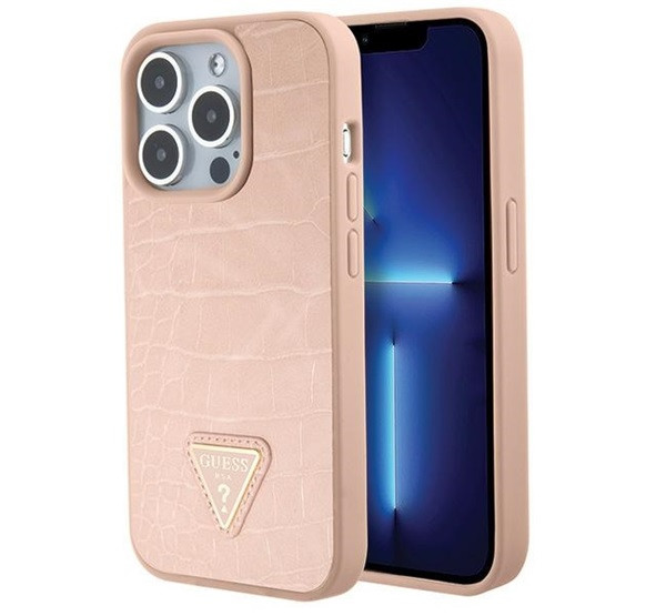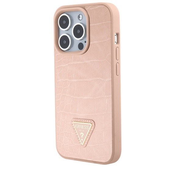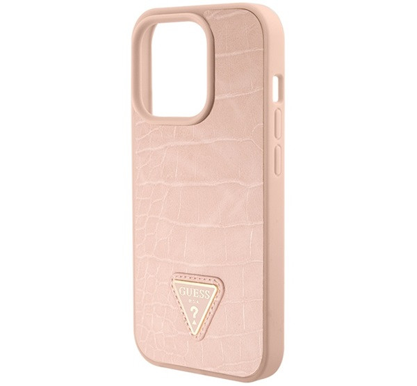 Guess Croco Triangle Metal Logo Apple iPhone 15 Pro hátlap tok, rózsaszín