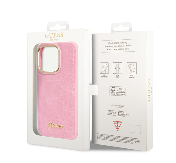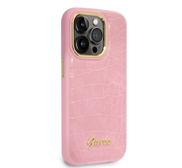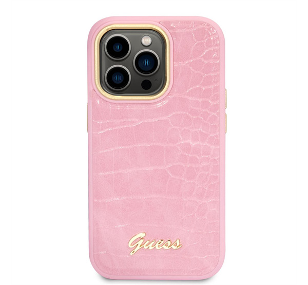 Guess Croco with Metal Camera Outline Apple iPhone 14 Pro hátlap tok, rózsaszín
