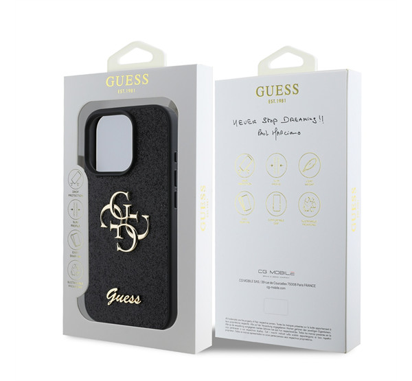 Guess Fixed Glitter Big 4G Apple iPhone 16 Pro Max hátlap tok, fekete/barna