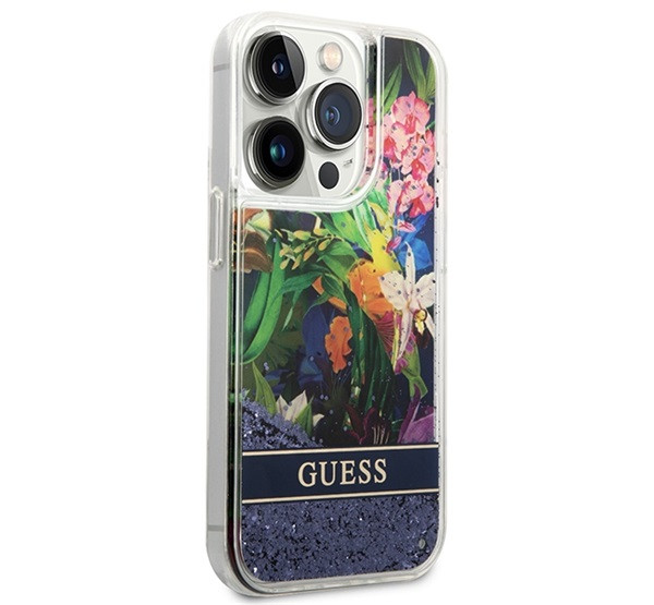Guess Flower Liquid Glitter Apple iPhone 14 Pro hátlap tok, kék