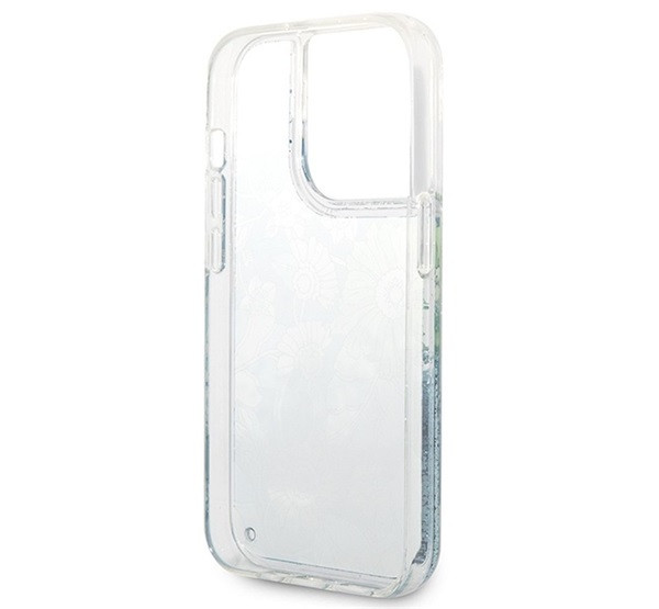 Guess Flower Liquid Glitter Apple iPhone 14 Pro hátlap tok, zöld