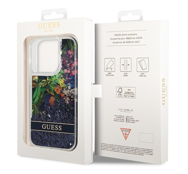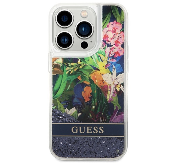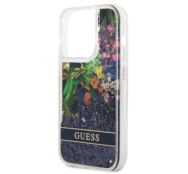 Guess Flower Liquid Glitter Apple iPhone 14 Pro Max hátlap tok, kék