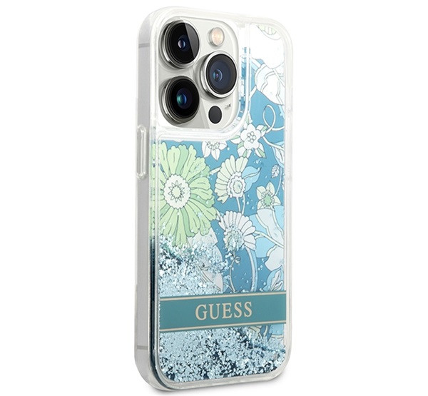 Guess Flower Liquid Glitter Apple iPhone 14 Pro Max hátlap tok, zöld