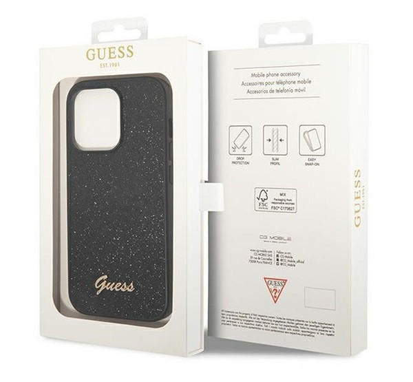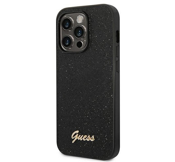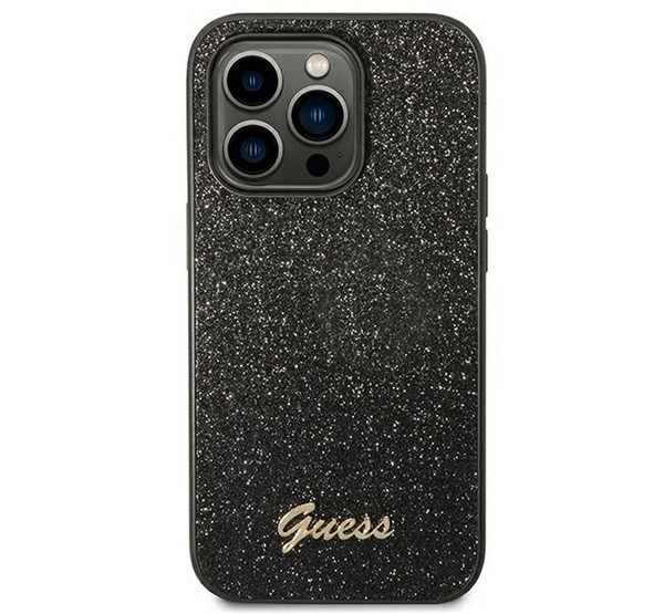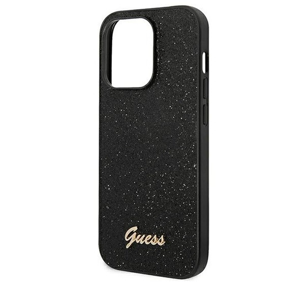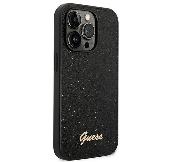 Guess Glitter Flakes Metal Logo Apple iPhone 14 Pro hátlap tok, fekete