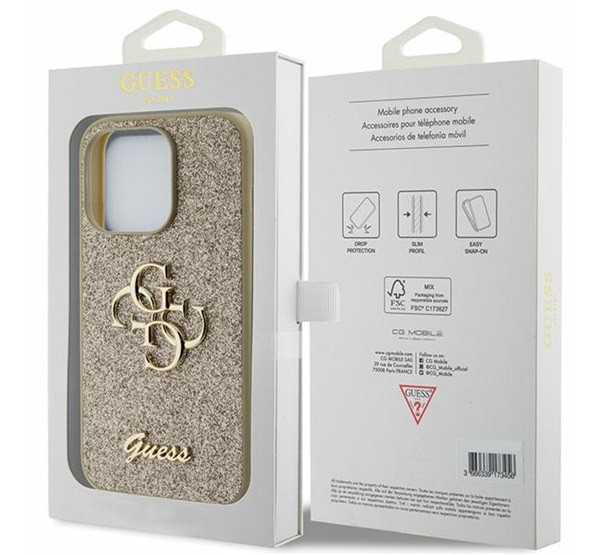 Guess Glitter Script Big 4G Apple iPhone 15 Pro hátlap tok, arany