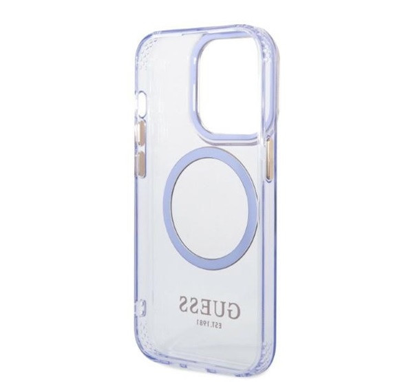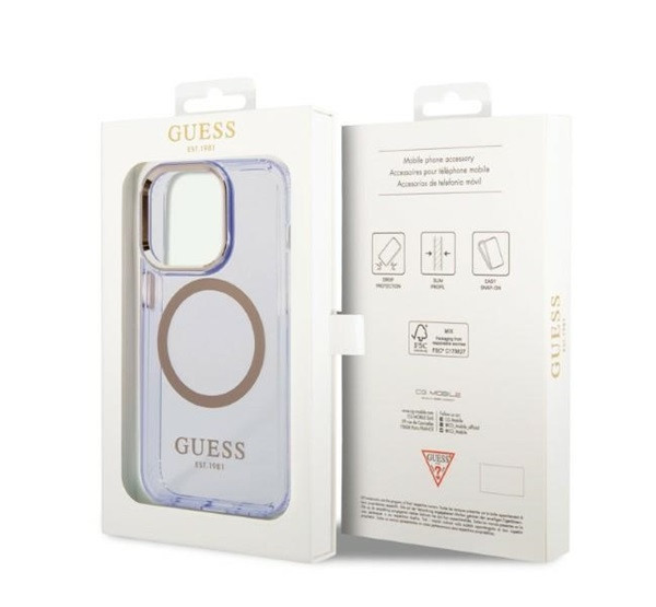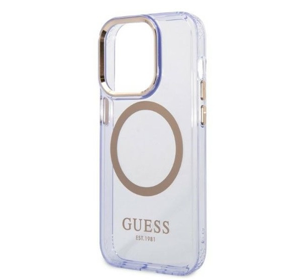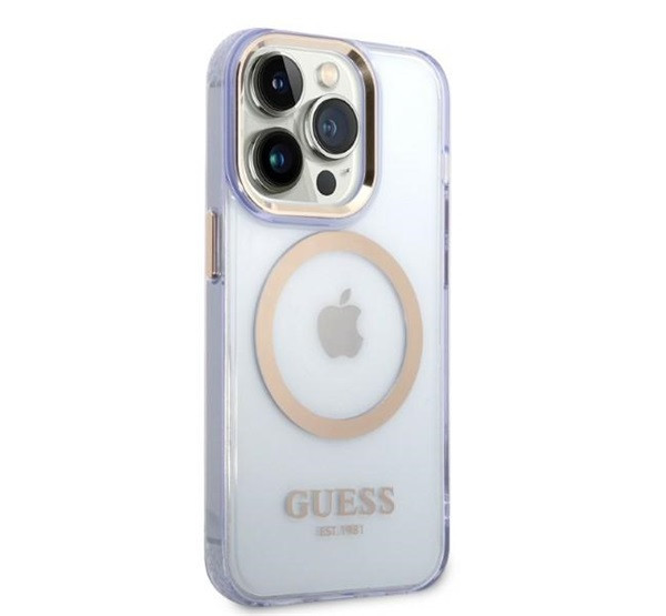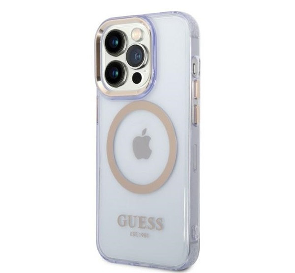 Guess Gold Outline Translucent MagSafe Apple iPhone 14 Pro Max hátlap tok, lila