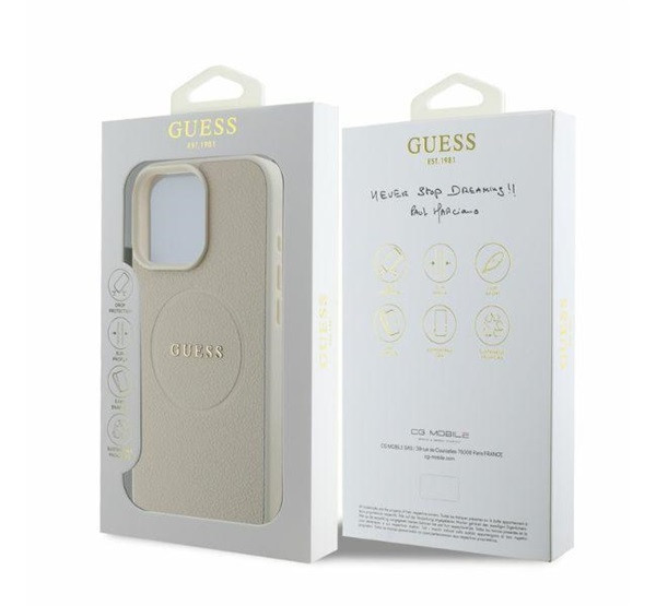 Guess Grained Gold Ring MagSafe Apple iPhone 16 Pro Max hátlap tok, bézs GUHMP16XPGHSMME