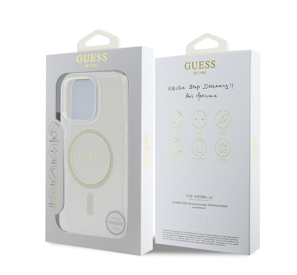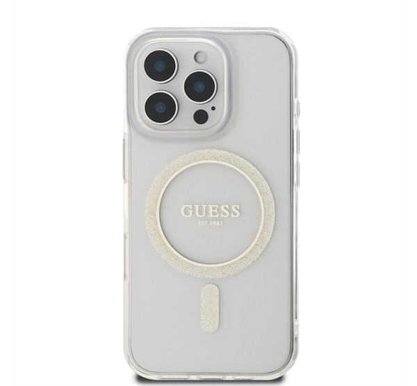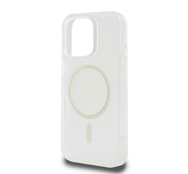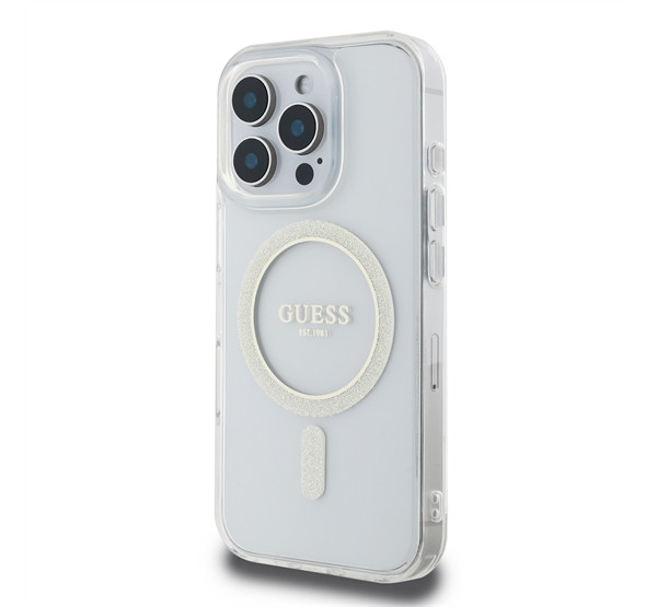 Guess IML Glitter Ring Apple iPhone 16 Pro Magsafe kompatibilis hátlap tok, átlátszó