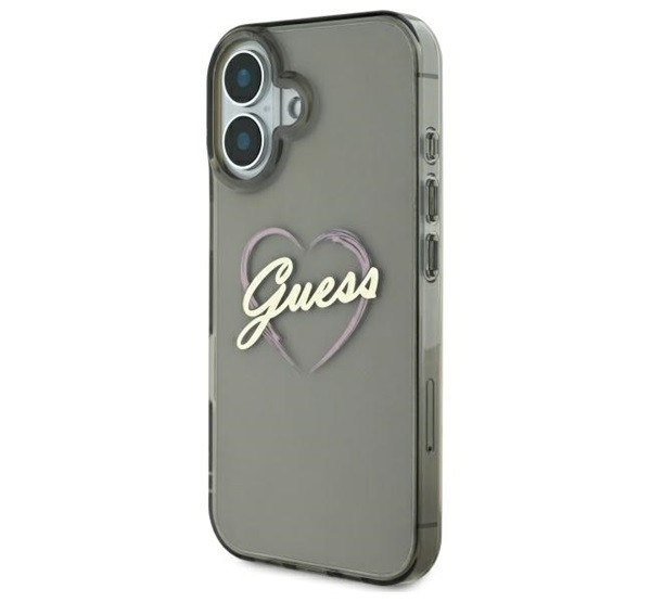 Guess IML Heart iPhone 16 kemény hátlap tok, fekete GUHCP16SHCHGSPK