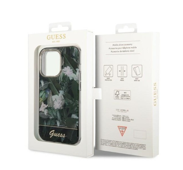 Guess Jungle Collection Apple iPhone 14 Pro hátlap tok, zöld