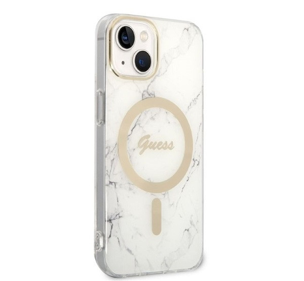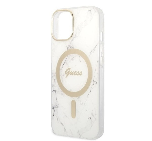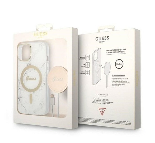 Guess Marble MagSafe Apple iPhone 14 Plus hátlap tok, fehér + MagSafe töltő