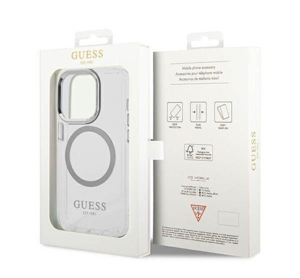 Guess Metal Outline Magsafe Apple iPhone 14 Pro Max hátlap tok, ezüst