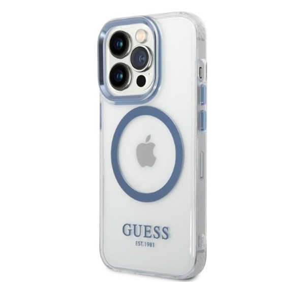 Guess Metal Outline Magsafe Apple iPhone 14 Pro Max hátlap tok, kék
