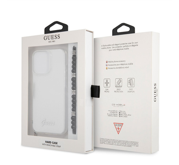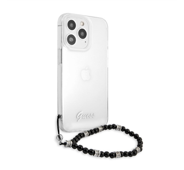 Guess PC Script and Black Pearls Apple iPhone 13 Pro Max hátlap tok, átlátszó