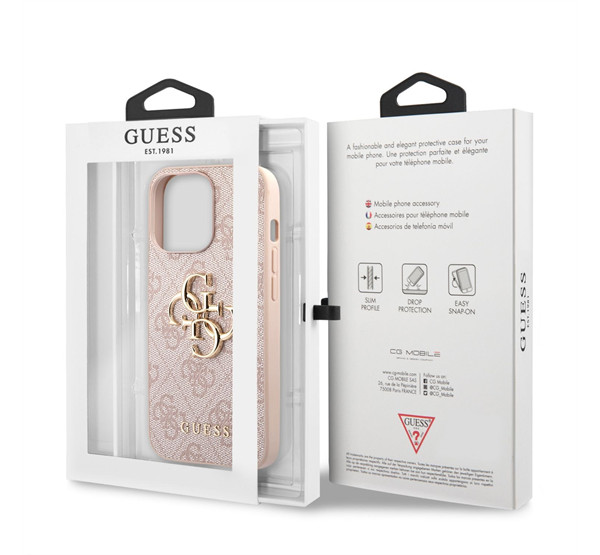 Guess PU 4G Metal Logo Apple iPhone 13 Pro Max hátlap tok, rózsaszín