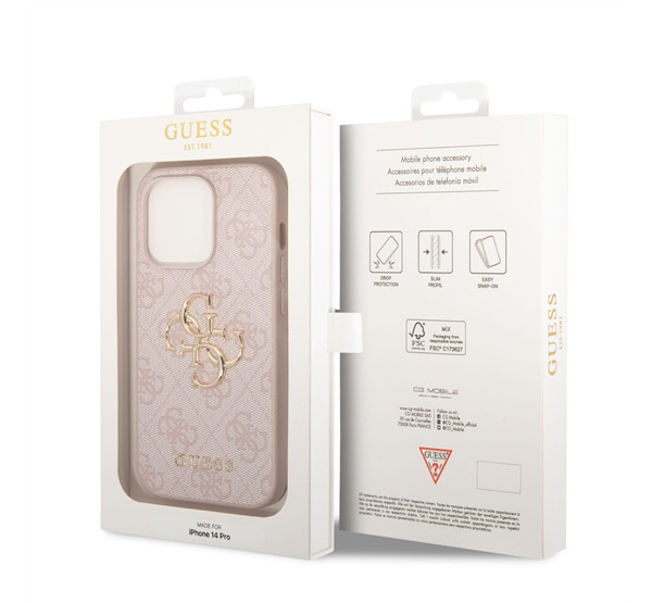 Guess PU 4G Metal Logo Apple iPhone 14 Pro hátlap tok, rózsaszín