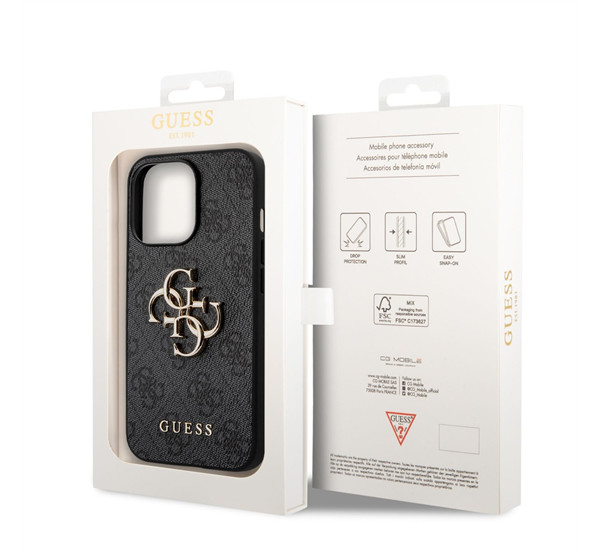 Guess PU 4G Metal Logo Apple iPhone 14 Pro Max hátlap tok, szürke