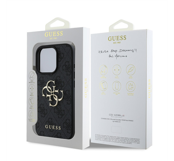 A prémium kategóriás Guess PU 4G Metal Logo hátlap elegáns, jellegzetes 4G mintával és a GUESS logóval kiegészítve.