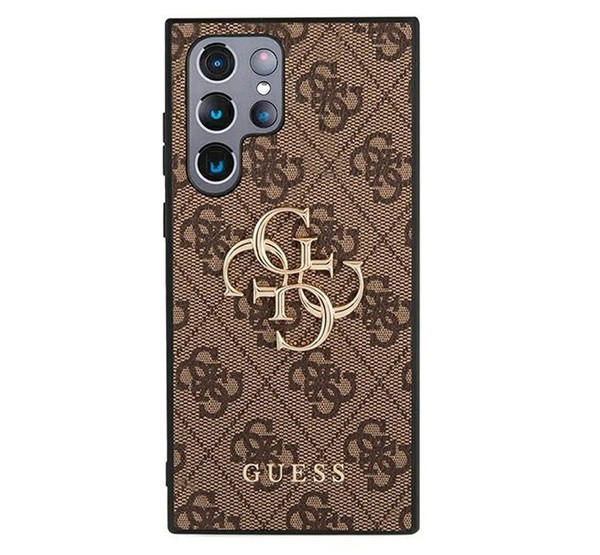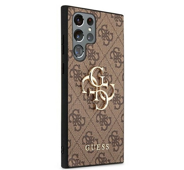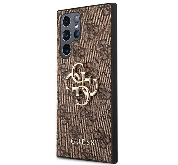 Guess PU 4G Metal Logo Samsung Galaxy S22 Ultra hátlap tok, barna