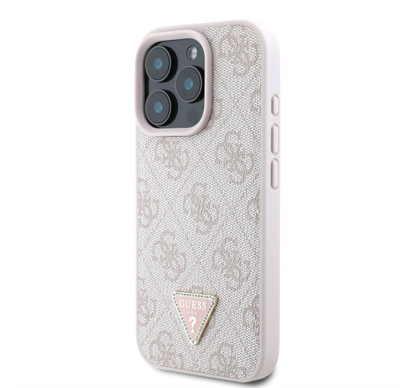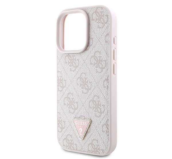 Guess PU 4G Strass Triangle Metal Logo Apple iPhone 16 Pro hátlap tok, rózsaszín