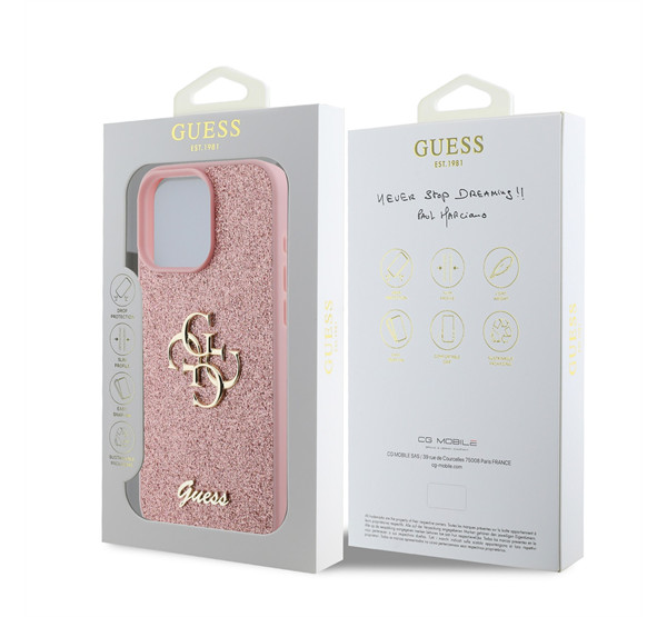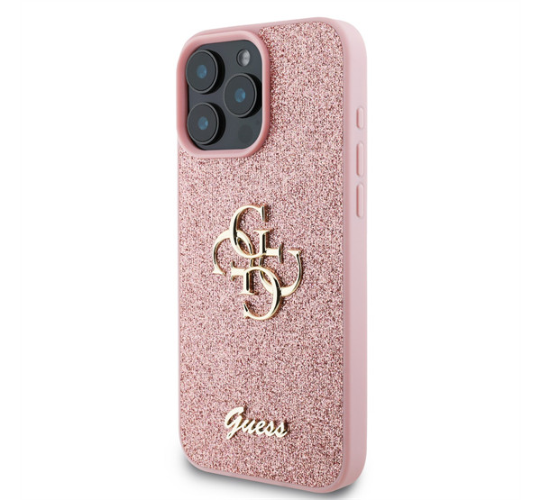Guess PU Fixed Glitter 4G Metal Logo Apple iPhone 16 Pro hátlap tok, rózsaszín