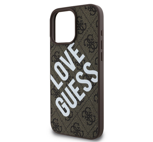 Guess PU Leather 4G Big Love Logo Apple iPhone 16 Pro Max Magsafe kompatibilis hátlap tok, barna