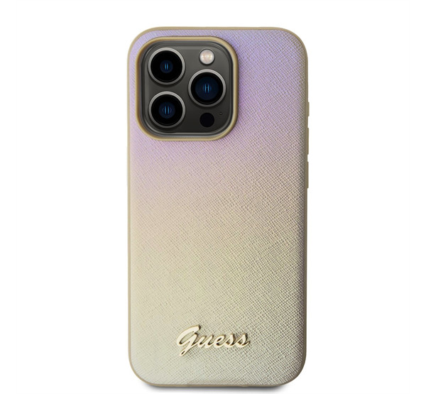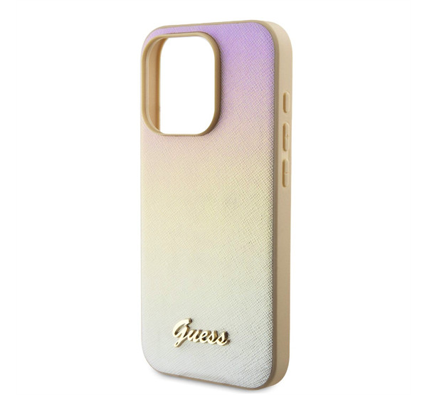 Guess PU Leather Iridescent Metal Script iPhone 15 Pro Max tok, arany