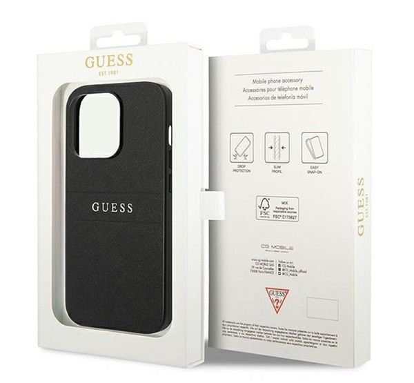 Guess PU Saffiano Apple iPhone 14 Pro bőr hátlap tok, fekete