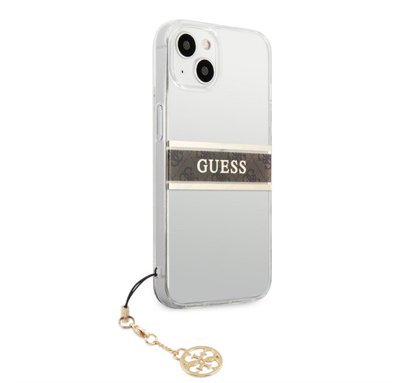 Guess PU/TPU Brown Stripe Apple iPhone 13 mini hátlap tok, átlátszó