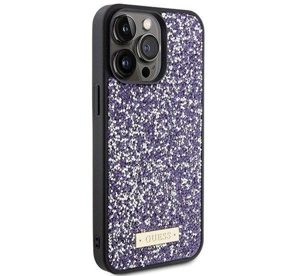 Guess Rhinestone Metal Logo Apple iPhone 15 Pro hátlap tok, lila