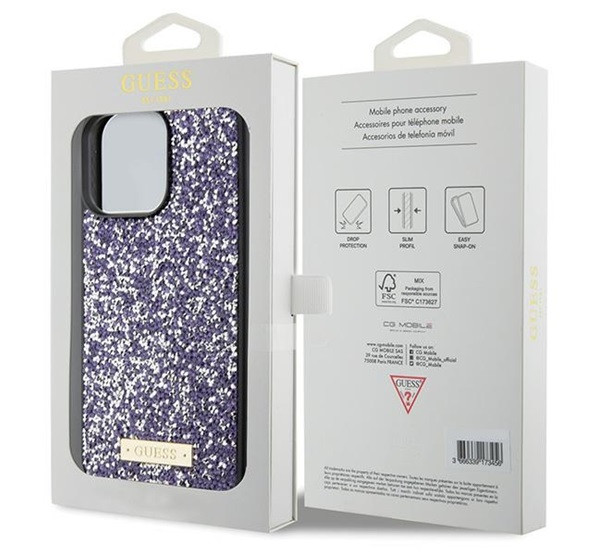 Guess Rhinestone Metal Logo Apple iPhone 15 Pro Max hátlap tok, lila